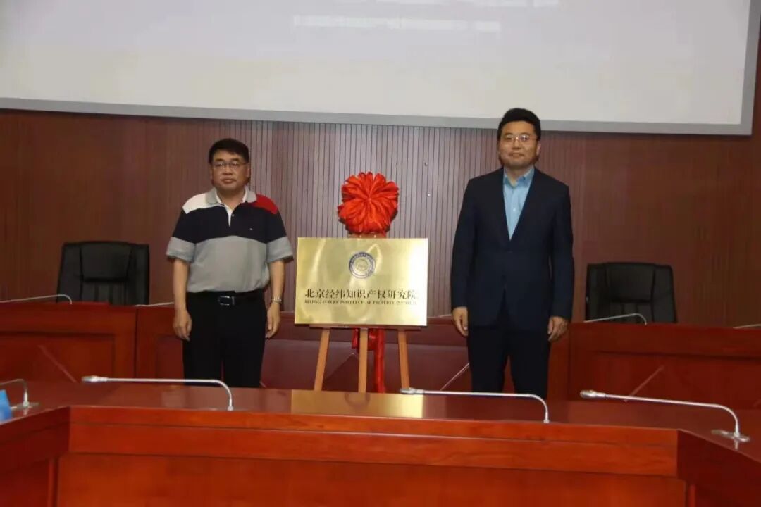 北京市知识产权局副局长李钟、北京经纬知识产权研究院院长陈镇共同为研究院揭牌